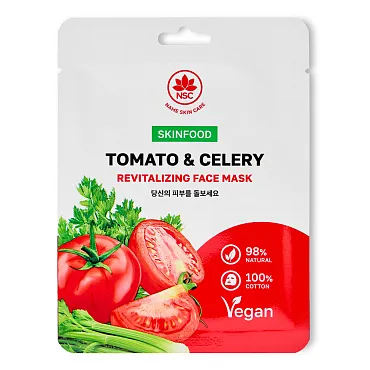 Тканевые маски для лица SKINFOOD помогают сохранить красоту кожи и восполняют недостаток необходимых веществ в ней. Маска с экстрактами томата и сельдерея глубоко увлажняет и успокаивает раздраженную кожу, защищает ее от старения и сохраняет сияние молодости, уменьшает видимость пор, регулирует секрецию сальных желез.