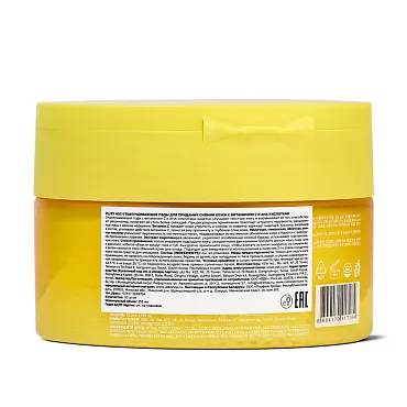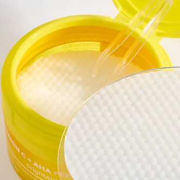 Отшелушивающие пэды с витамином C и AHA-кислотами заметно улучшают текстуру кожу и выравнивают ее тон, способствуют увлажнению, помогают ей стать более сияющей. При регулярном применении помогают устранить неровности, расширенные поры и мелкие морщинки. Витамин C придает коже упругость и сияние, мгновенно заряжает энергией. Кислоты, входящие в состав, усиливают действие витамина С, помогая ему проникать в глубокие слои кожи. Молочная, гликолевая, яблочная, винная кислоты уменьшают выраженность пигментных пятен, поддерживают естественное обновление кожи и борются с видимыми признаками старения. Экстракт миротамнуса увлажняет, укрепляет ослабленный кожный барьер, успокаивает чувствительную кожу.