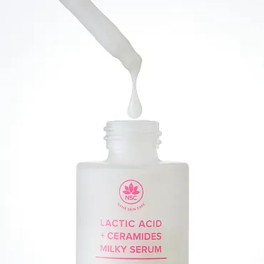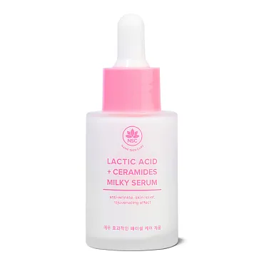 Молочная сыворотка для лица с молочной кислотой и церамидами повышает эластичность кожи и оказывает мощный лифтинг-эффект. Молочная кислота проводит влагу в глубокие слои кожи, увлажняет и смягчает, придает ей сияние. Церамиды предотвращает увядание кожи, препятствует трансэпидермальной потере влаги, благодаря этому мелкие морщины становятся менее заметными. Ниацинамид омолаживает, выравнивает цвет лица и стимулирует синтез коллагена. Витамин Е оказывает антиоксидантный и омолаживающий эффект, усиливает барьерные функции кожи.
