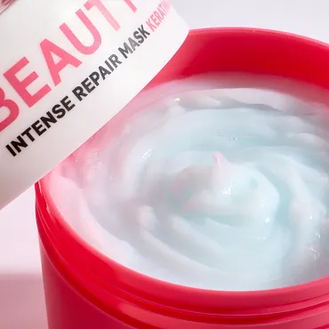 Маска для волос с кератином и коллагеном восстанавливает поврежденные (окрашиванием, горячими температурами, расчесыванием), ломкие и сухие волосы. Глубоко проникающие молекулы коллагена и кератина заполняют пористые участки, делая волос гладким, защищая его от разрушения, проникает в стержень волоса, делая волосы более плотными. Восстанавливает увлажненность и здоровое сияние волос. Обволакивая каждый волос, маска создает защитную пленку и предупреждает последующее травмирование структуры
